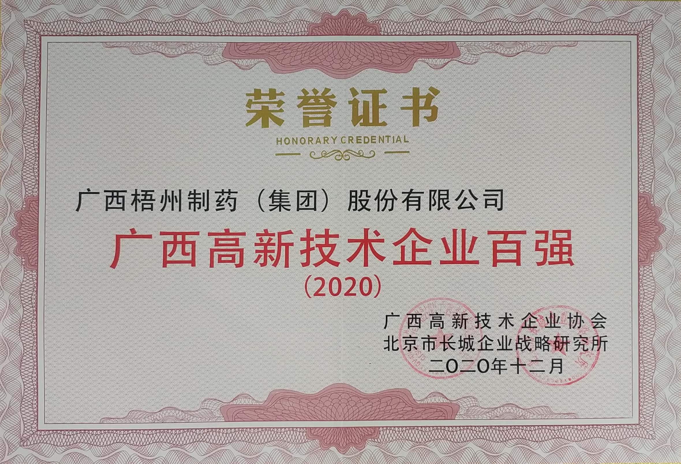 榮獲2020年廣西高新技術(shù)企業(yè)百?gòu)?qiáng)稱(chēng)號(hào)