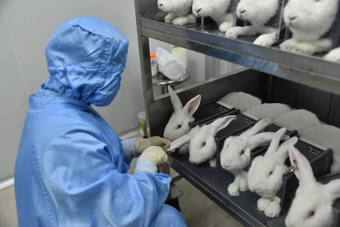 “小兔子乖乖快出來”每天早上9點,馮偉玲都和其他同事一起,一邊在兔子耳邊喃喃細(xì)語,一邊輕柔地將生長室里的3只小白兔抓取出來,移到另外的工作室。