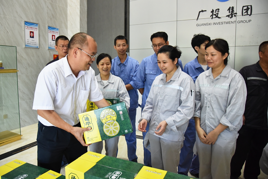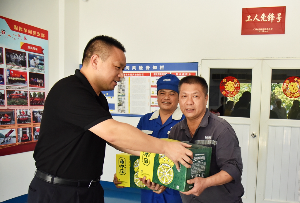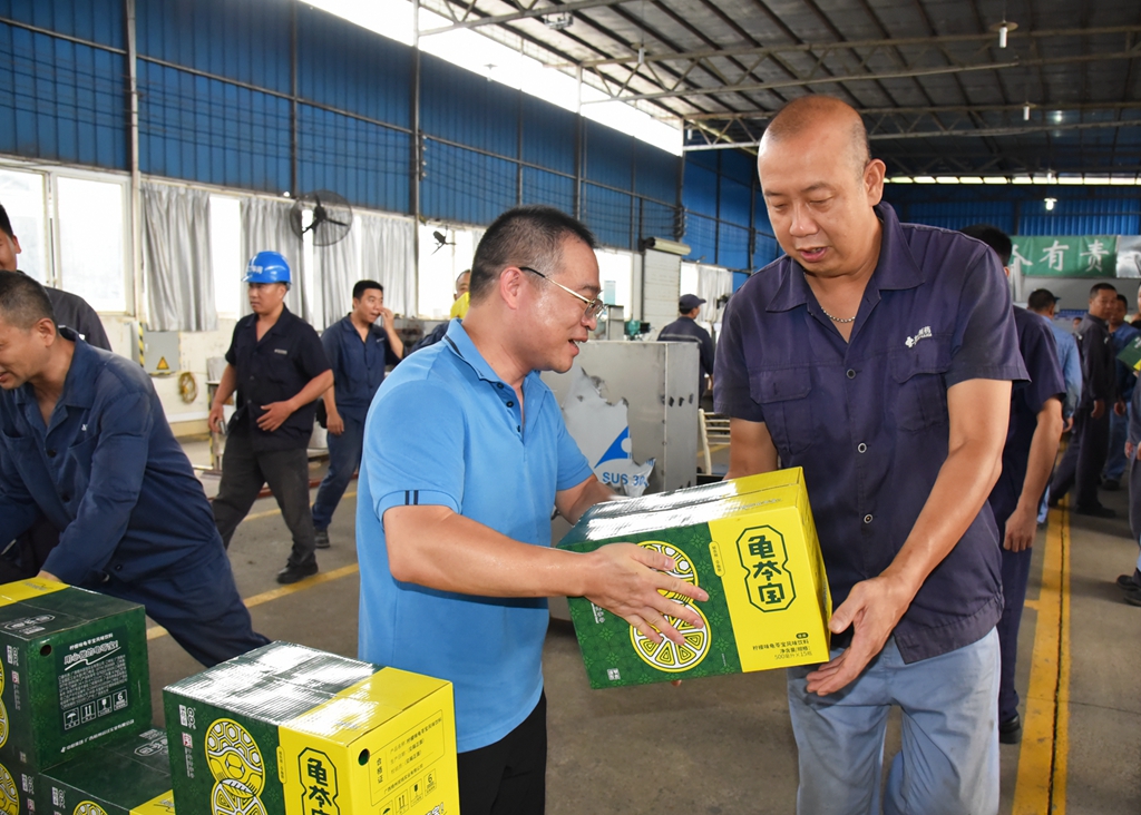 “天氣這么熱,大家辛苦了!”“注意自我保護(hù),記得多喝水!”“崗位都備有防中暑藥品,主任們要留意職工的身體狀態(tài), 合理安排休息?!苯?,梧州制藥領(lǐng)導(dǎo)班子分別帶上清涼飲品,到各車間慰問(wèn)奮戰(zhàn)在高溫崗位的職工,聲聲叮嚀,讓職工們?cè)谑⑾闹懈惺艿搅岁囮嚽鍥觥?/span>
