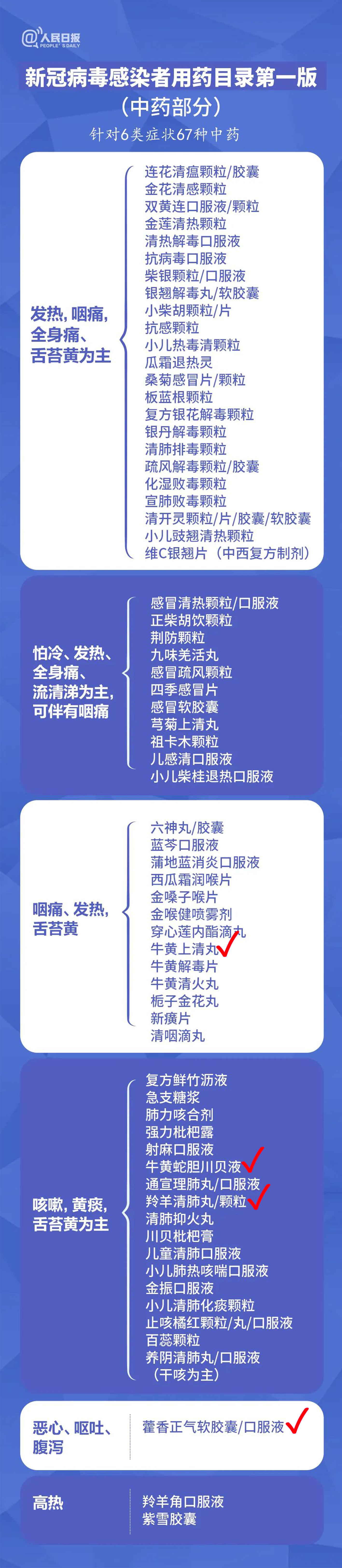 此版用藥目錄按照中西藥分開的原則,是對國家第九版診療方案中推薦用藥的完善和補(bǔ)充,針對發(fā)熱、咽痛等6類中醫(yī)診斷癥狀推薦67個(gè)中藥品種;針對咳嗽、咳痰等4類臨床癥狀推薦41個(gè)西藥品種。