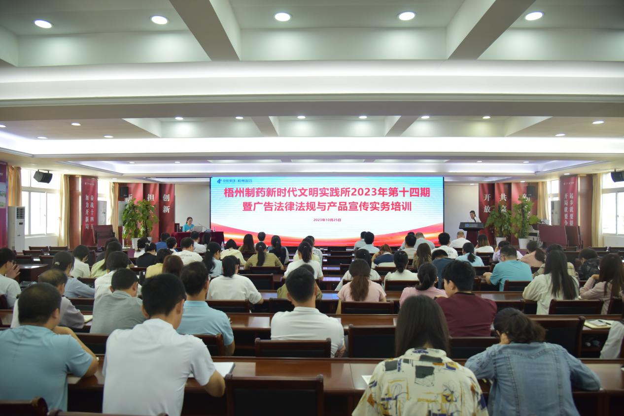 近日,梧州制藥在公司辦公樓六樓一號(hào)會(huì)議室舉辦新時(shí)代文明實(shí)踐所2023年第十四期暨廣告法律法規(guī)與產(chǎn)品宣傳實(shí)務(wù)培訓(xùn),特邀梧州市市場(chǎng)監(jiān)督管理局廣告監(jiān)督管理科科長(zhǎng)謝艷娟前來(lái)授課,梧州制藥各部門(mén)、各車(chē)間,以及集團(tuán)公司和各兄弟企業(yè)相關(guān)人員共計(jì)90余人參加培訓(xùn)。