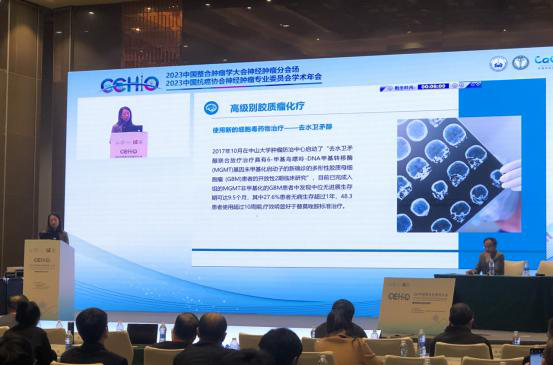 會上,中山大學腫瘤防治中心郭琤琤教授為注射用去水衛(wèi)矛醇納入《膠質(zhì)瘤化療中國專家共識》進行詳細的解讀。她表示,去水衛(wèi)矛醇主要作用機制是由-鳥嘌呤DNA烷化,具有不受MGMT影響,對膠質(zhì)瘤細胞增殖有較高抑制率,血腦屏障(BBB)通過率較高等優(yōu)點。“去水衛(wèi)矛醇聯(lián)合放療治療具有-甲基鳥嘌呤-DNA甲基轉(zhuǎn)移酶 (MGMT)基因未甲基化啟動子的新確診的多形性膠質(zhì)母細胞瘤 (GBM)患者的開放性2期臨床研究”項目顯示:MGMT非甲基化的GBM患者中發(fā)現(xiàn)中位無進展生存期可達9.5個月,其中27.6%患者無病生存超過1年,48.3%患者使用超過10周期。為醫(yī)師在臨床應(yīng)用中提供更多的依據(jù),有機會提高MGMT非甲基化的膠質(zhì)瘤患者療效,增加患者生存獲益。