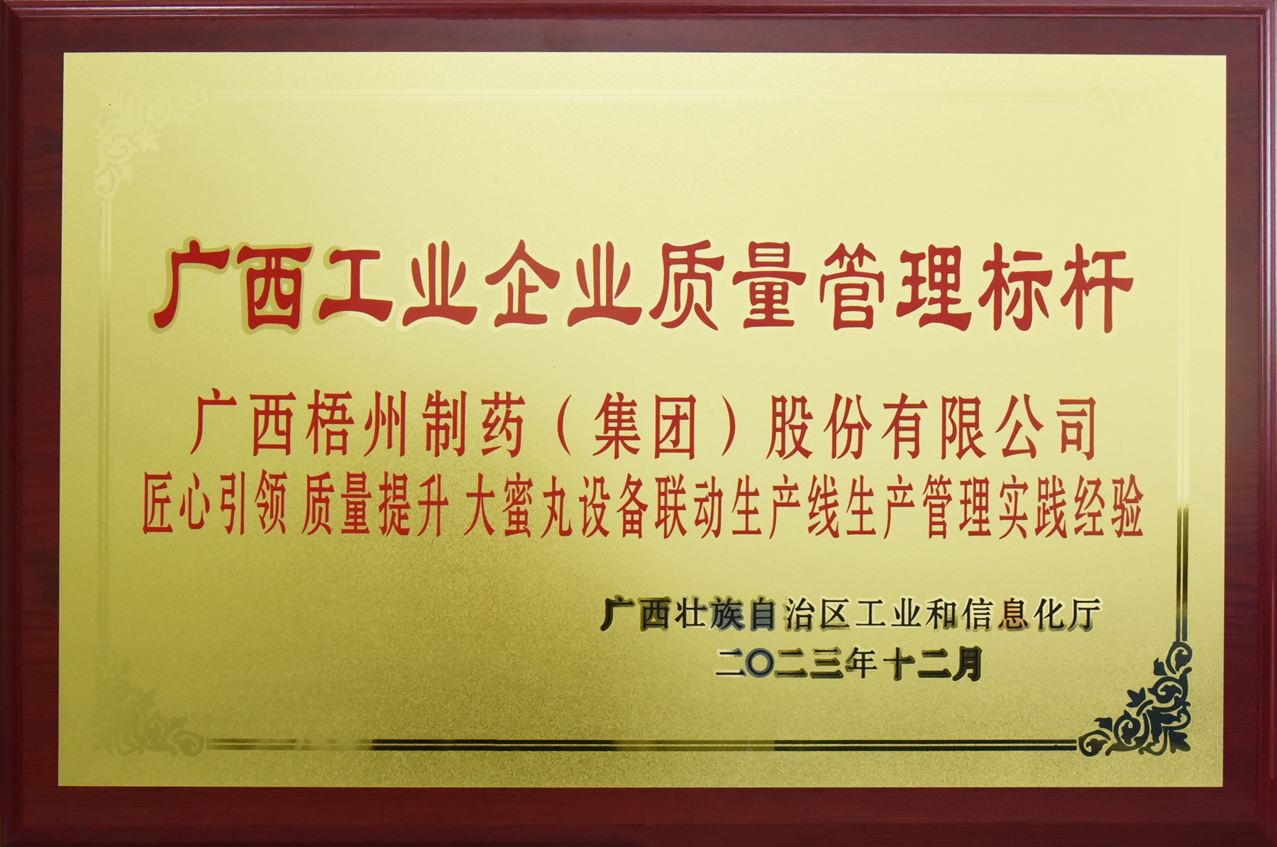 梧州制藥匠心引領質(zhì)量提升大蜜丸設備聯(lián)動榮獲生產(chǎn)線生產(chǎn)管理實踐經(jīng)驗榮獲廣西工業(yè)企業(yè)質(zhì)量管理標桿