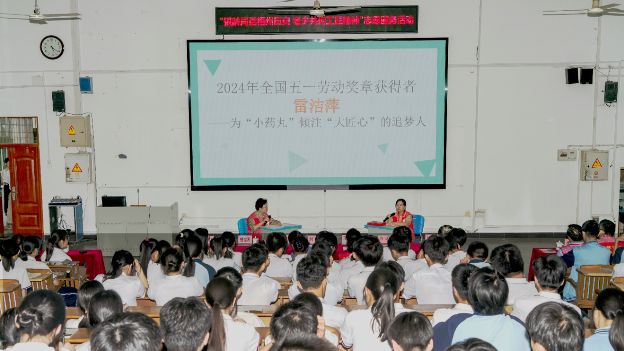 近日,在梧州市第一中學(xué),一場(chǎng)別開生面的“巾幗勞模進(jìn)校園”開講了,由中共梧州市委員會(huì)老干部局主辦的“銀齡同話梧州歷史 老少共傳工匠精神”志愿服務(wù)活動(dòng),梧州制藥固體車間工藝與技術(shù)主管雷潔萍受邀作為宣講代表出席活動(dòng)。