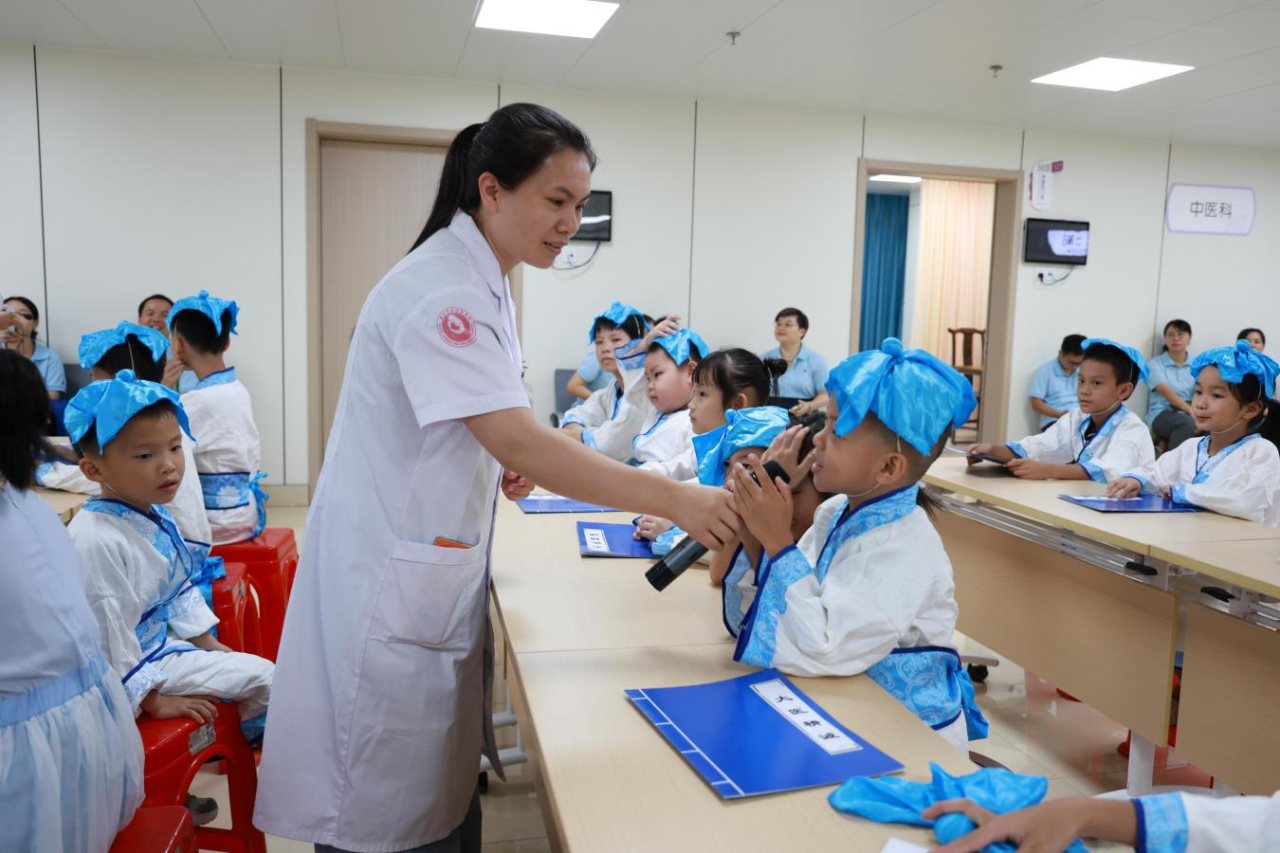 活動現(xiàn)場,資深中醫(yī)師通過寓教于樂的方式,講述著中醫(yī)基礎(chǔ)理論、經(jīng)絡(luò)穴位知識以及中醫(yī)藥在日常生活的應(yīng)用。孩子們不僅聽得津津有味 ,還積極舉手提問互動,從藥材的形狀、生長環(huán)境到用藥知識等,都表現(xiàn)出對中醫(yī)藥文化強烈的求知欲望。