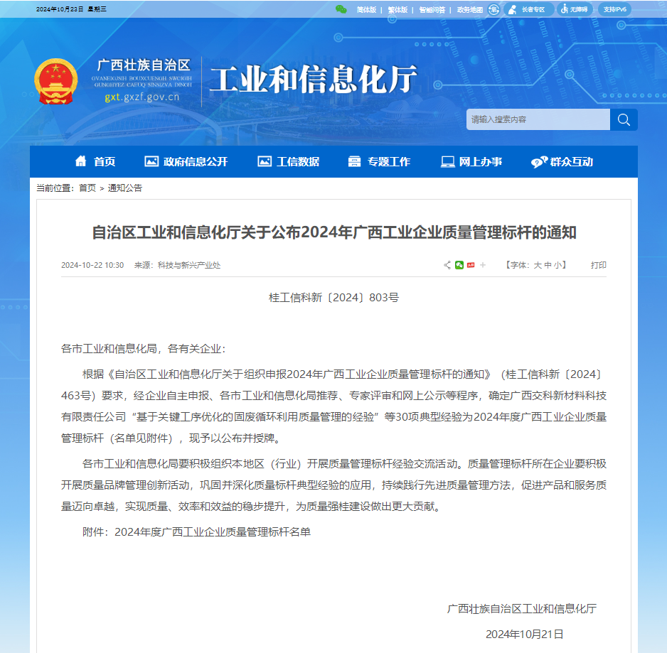 近日,廣西壯族自治區(qū)工業(yè)和信息化廳公布了2024年度廣西工業(yè)企業(yè)質(zhì)量管理標(biāo)桿名單,梧州制藥“中藥口服制劑生產(chǎn)車間應(yīng)用精益生產(chǎn)管理經(jīng)驗”成功入選,公司連續(xù)第三年榮獲“廣西工業(yè)企業(yè)質(zhì)量管理標(biāo)桿”稱號。