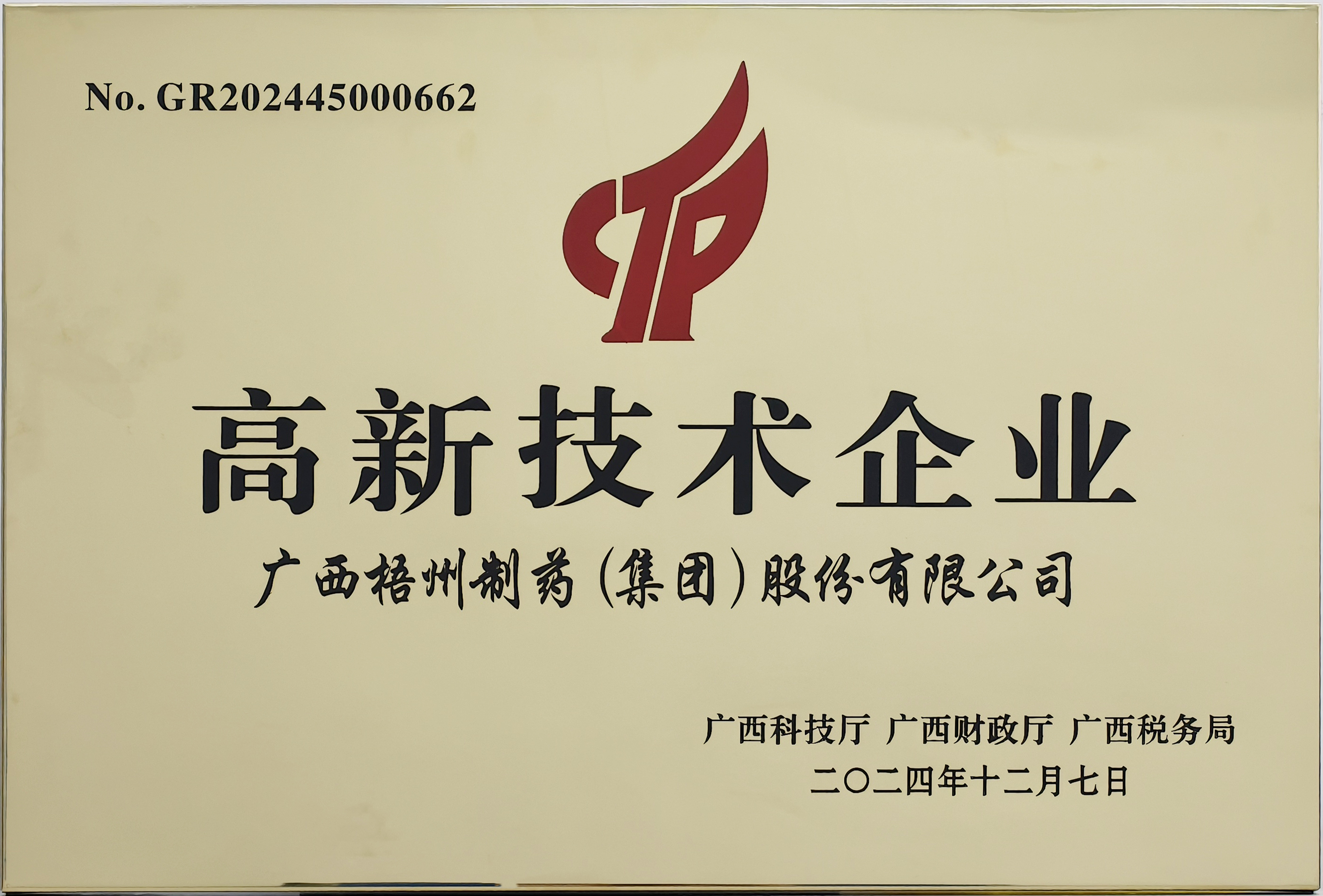 廣西梧州制藥(集團)股份有限公司榮獲高新技術企業(yè)